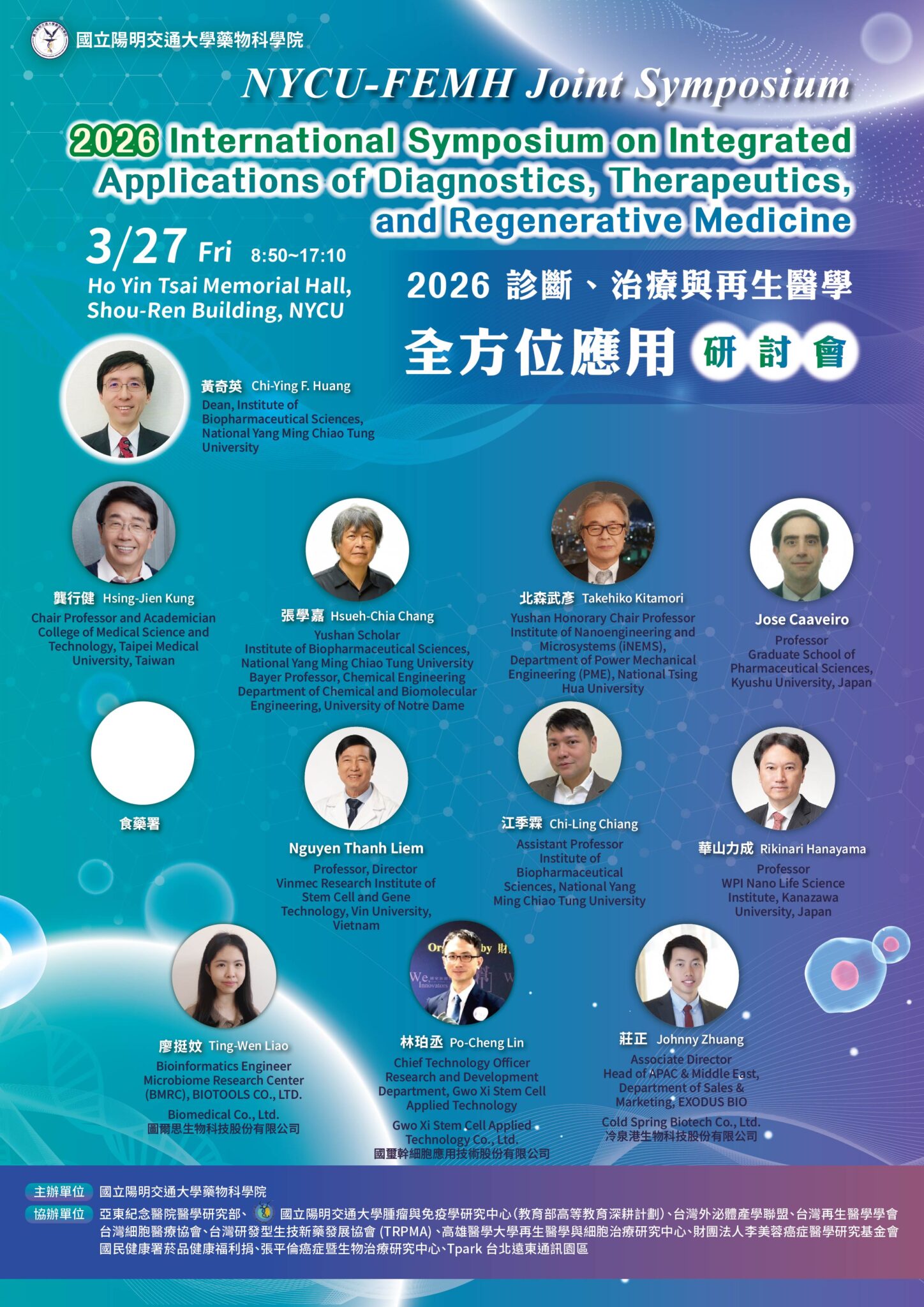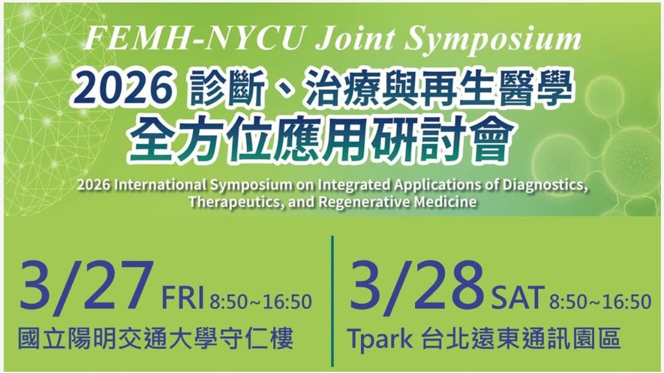This symposium aims to establish an international exchange platform centered on translational medicine, integrating fields such as diagnostic technologies, innovative therapeutics, and regenerative medicine. Experts from clinical practice, academia, government, and industry are invited to share the latest research findings, clinical applications, and regulatory developments. The event will also highlight Taiwan’s research capabilities in precision medicine and regenerative medicine.
